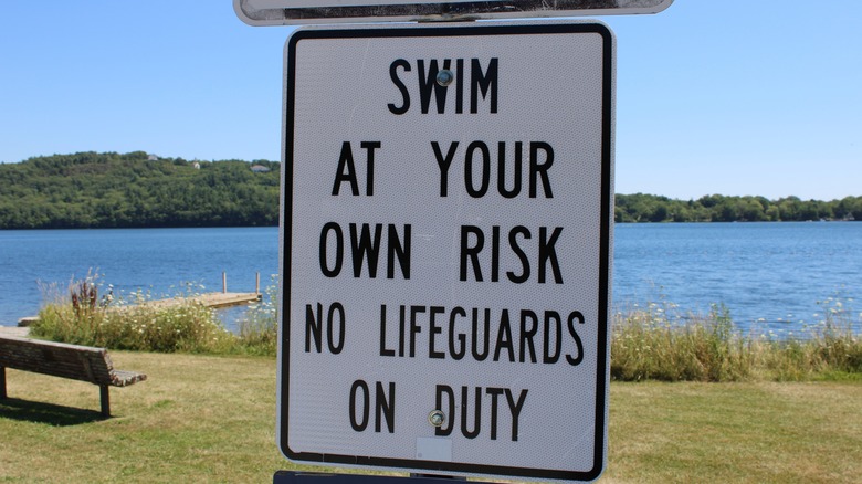 Now, if a campsite is smaller and does not have the funds to staff lifeguards, a "Swim at Your Own Risk" sign is adequate to avoid potential lawsuits. As a camper and swimmer, it is important to keep that in mind should an accident occur. It is worth noting, however, that the legal protections of this sign do not apply to children harmed while swimming, per Butler Prather LLP.
