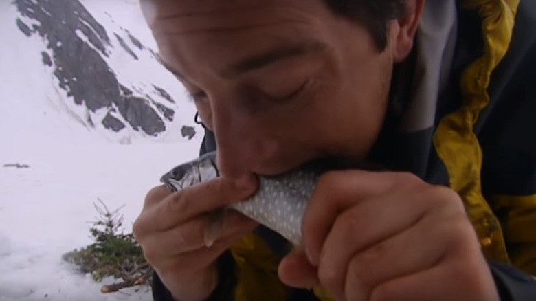 There was also a time when he ate a fish that made many viewer's stomach's squirm. Normally, there's nothing particularly gross about eating a fish. However, in one particularly cold area, Bear Grylls decided it would be too hard to make a campfire, so he ended up eating a fresh fish, causing its organs to explode out of the side.