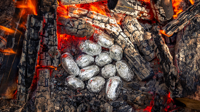 Pros to campfire cooking with aluminum foil: One the main pros to cooking with aluminum foil is it is very easy, yet also lends itself to creating more complex meals. You can simply wrap potatoes, fish, meat, or veggies in foil and allow them to remain in the coals, on a rock heated by fire, or over the fire on a campfire grill or makeshift stick grill until they are done. But, you can also create an unimaginable array of full, flavorful foil-packet meals. Aluminum foil is also light and easily transported.
