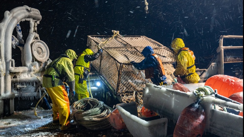 Fishermen fight against storms and terrible waves on a regular basis as they navigate the oceans searching for fish. However, "Deadliest Catch" crews and other crabbers have to face another danger as well, and that's ice. King crab season near Alaska is between October and January when waters are cold and ice is common. Cold water is already an issue due to its potential to quickly drown crewmates should they end up overboard, but icy conditions make things even worse.