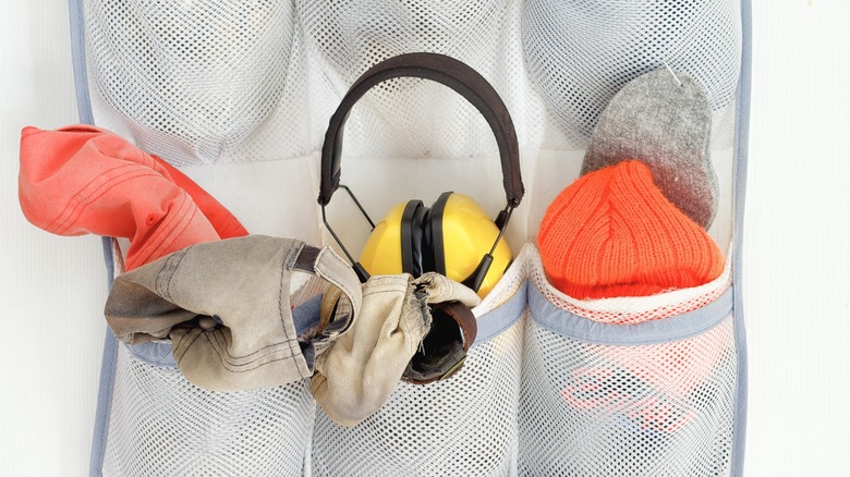 Multi-pocketed hanging organizers, such as those designed to hold shoes, are great for keeping a variety of items off the ground and easily found. For starters, hanging shoe organizers can be used to hold shoes. This is no small advantage at a campsite, where multiple pairs of shoes and boots can quickly become a cluttered mess. Hanging shoes and boots not only keeps them orderly and easily found, it also helps prevent critters such as scorpions from crawling inside overnight.