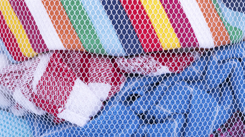 No matter what you are placing in a mesh bag, suspending it off the ground by hanging it on a stake, limb, or other elevated object can aid in the drying process and allow any water or dirt to fall through the bag.