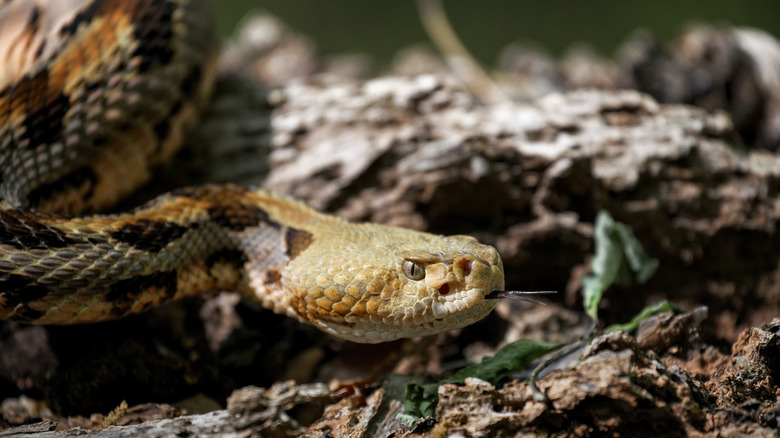 Close to a dozen snakes are native to the Adirondack Mountains. Luckily for adventurers in the Adirondack Park, only one of these is venomous — the timber rattlesnake — and its range is limited to the southern portion of the park. The bad news? Timber rattlers are very venomous and dangerous. In fact, rattlesnakes are considered one of the most dangerous types of snakes in the world. However, although they pack enough venom to kill a grown human, timber rattlers are considered a bit more mellow than other varieties of rattlesnakes and rarely bite people. Typically, they only strike when they feel threatened and, even then, usually give a warning rattle before lashing out.