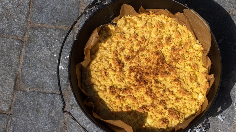 Nothing goes better with campfire steaks, chili, or kebabs than a nice, piping-hot slice of sweet cornbread prepared in a skillet or Dutch oven. It doesn't matter if you're using a boxed mix or your own special, homemade recipe. Having some cornbread around is a fantastic way to liven any meal.