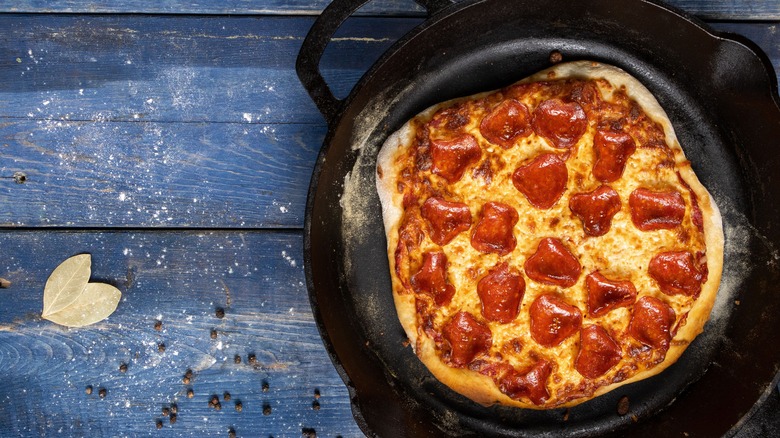 You'll need a Dutch oven or a covered skillet in order to cook the pizza over the coals. The cover allows the heat to circulate and better bake the dough, cheese, and toppings. Let the dough cook alone for about five minutes before adding toppings. Bake another 10 minutes, covered and over the coals. Once finished, you've got yourself an awesome, flavorful pizza into which you can dig.