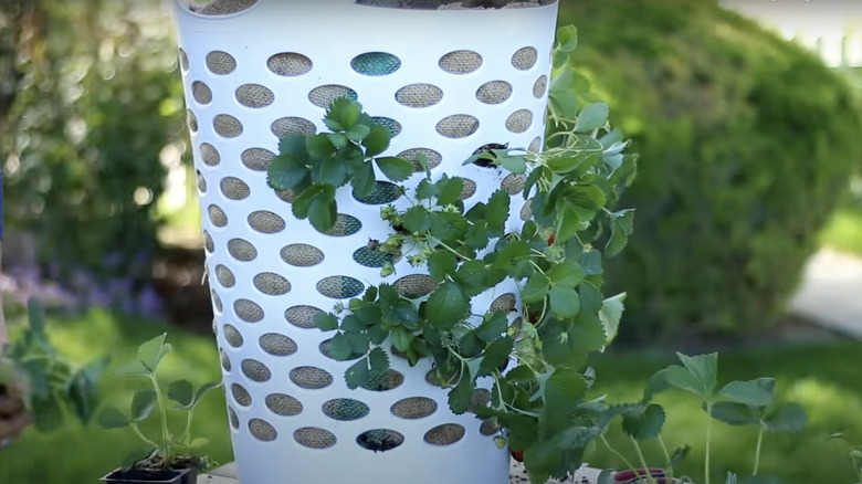 However, while there are plenty of benefits to growing strawberries in large planters, the problem is that garden planters are often expensive. Luckily, you can easily make your own DIY strawberry planter out of a laundry basket. In fact, one of those tall laundry hampers that can be easily purchased at most big box stores can make for the perfect DIY strawberry planter with only a few tools — including scissors, a drill, and a burlap sack or garbage bag. Here's how to do it.