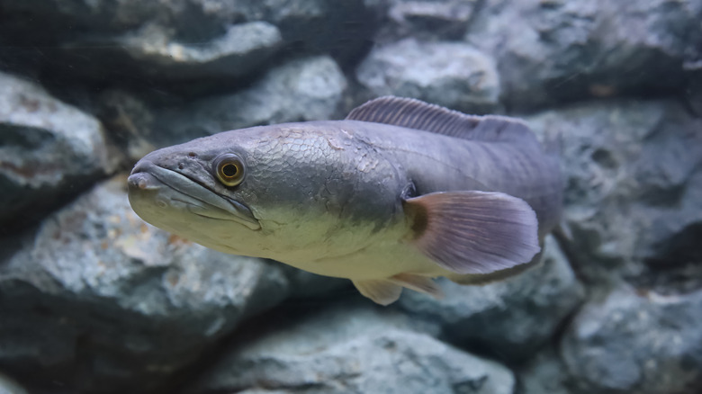 A species native to freshwater rivers in southeastern Asia, the giant, or northern, snakehead are a large, aggressive fish that have been known to attack humans. Like the goliath tigerfish, most of these attacks are reported by word of mouth. In another episode of "River Monsters," a fisherman supposedly had his leg mauled by a giant snakehead, resulting in some severe injuries. This means that, like other fish on this list, the giant snakehead is not afraid to go after targets larger than itself.