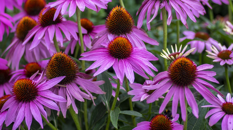 Coneflowers, also known as echinacea, are a wonderfully colorful, unique looking perennial flower that are known to have medicinal properties, per Healthline. The most interesting feature of these flowers are their cone-shaped eyes. They rise in a small mound from the center of the petals, which themselves fan outwards, making the bloom look almost like a dress. The subtle honey scent is not immediately detected by humans, but it is strong enough to attract some beneficial insects to the garden.