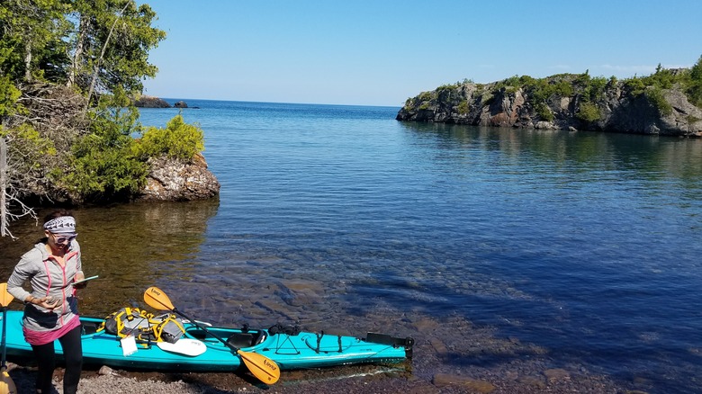 Situated in the northwest portion of Lake Superior just inside the U.S.-slash-Canada border, Isle Royale National Park is literally surrounded by paddling opportunities. However, before planning a paddle, there are a couple of steps that must be taken first. Step one is figuring out how to get to the park, which is not connected to land. Essentially, there are three ways to reach Isle Royale National Park: via ferry, seaplane, or private boat. There are two ferries and one seaplane departure point in Michigan and two more in Minnesota (a ferry and seaplane). Kayaks and canoes can be transported on ferry boats. Rentals are also available on the island. The departure point and transportation manner you choose will dictate which end of the island you will arrive at.