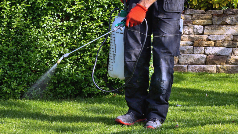 The reason that violets are so difficult to get rid of and hated by gardeners and homeowners alike is that hand pulling doesn't work because these flowers spread through strong underground root systems and can easily come back unless the entire root is removed. On top of this, many weed killers don't work on violets because they have waxy leaves that prevent the absorption of herbicides. Luckily, there is one herbicide that actually works well against violets and can even kill the flowers without harming your grass — triclopyr. Triclopyr is a selective herbicide that effectively kills only broadleaf plants (like violets, ground ivy, dandelions, and chickweed) while leaving your grass alone, making for the perfect tool to manage a violet infestation.