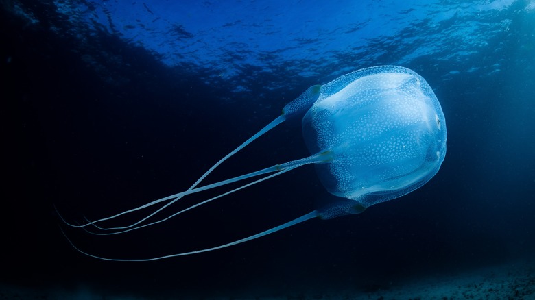 Depending upon the length and severity of the sting, an adult human can very easily die within a few minutes of being stung by a box jellyfish. Their poison causes severe tissue damage to the skin, and can cause lasting pain. These jellyfish are so numerous in the Pacific Ocean that as many as 40 people a year are killed by them, according to Live Science. These are the single most venomous animal in the entire world, and should never be encountered if it can be helped.