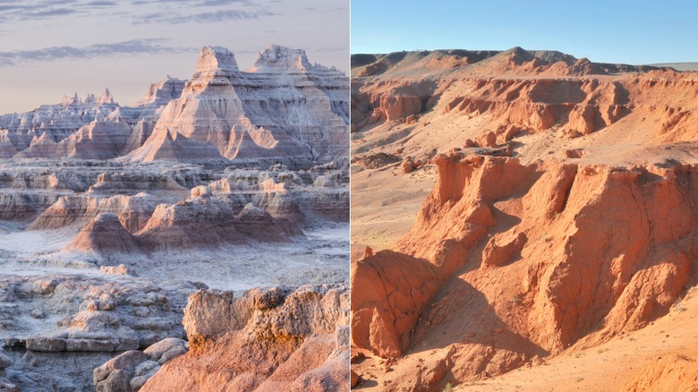 While the Mongolian badlands are known for their harsh conditions that would take weeks to cross in their entirety, Badlands National Park offers a more approachable yet equally stunning alternative within the United States.
