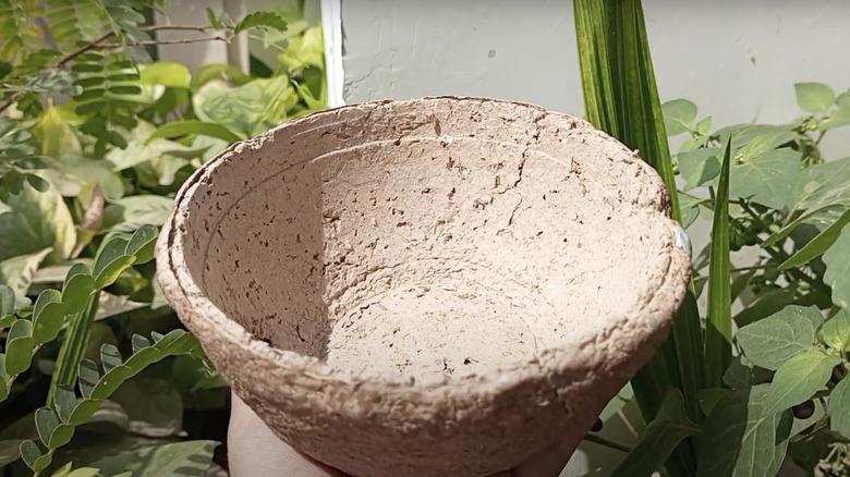 Once this is done, go ahead and put the cardboard pulp to a separate bowl and then mix in around three to four tablespoons of glue. To make this project even more environmentally friendly, you can also make your own glue by cooking down a half cup of flour and two cups of water. Now that you have your paper clay, it's time to mold your pot. Using a bowl or flower pot of your desired shape and size, go ahead and cover it in an even layer of your paper mixture. Then, set it outside to dry for three to four days and you will have the perfect biodegradable flower pot. Now, all you have left to do is poke a few drainage holes in the bottom.