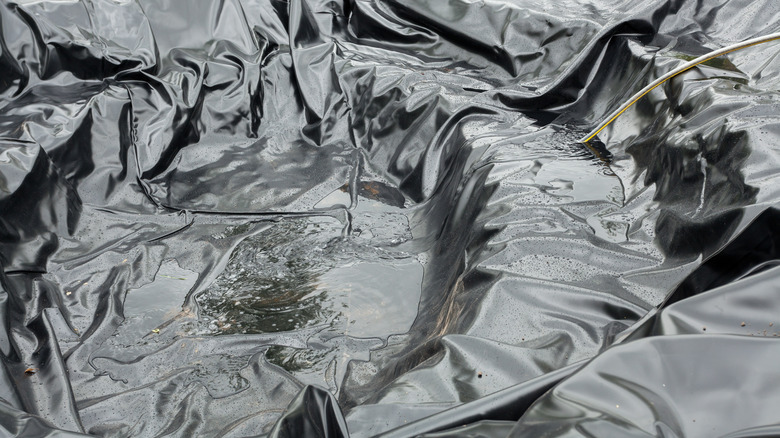 The first step either way is to cut the sidewall portion off one side of the tire. Once that is done, the simplest of ponds would entail laying the plastic liner over the entire tire, placing rocks or bricks around the outside of the tire to hold the liner in place, and filling the pond with water. A slightly more advanced version of this build would be digging a hole slightly larger than the tire so the pond is in the ground rather than above. Then, place the liner and rocks in place.
