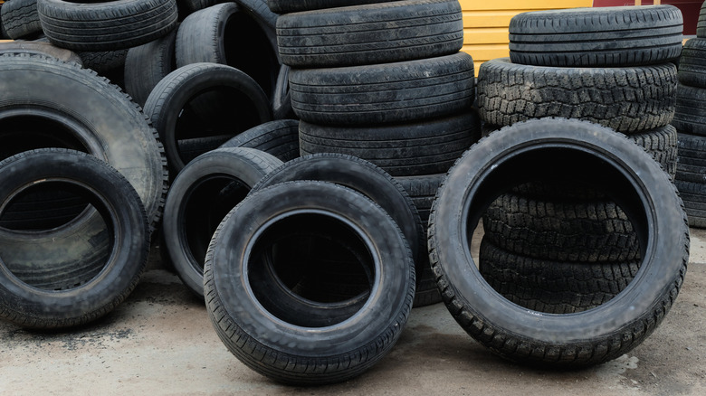 Tire ponds can be sealed in one of two ways — lining it with a heavy plastic sheet or filling the center hole with concrete. If you choose plastic, you need a sheet of heavy plastic liner large enough to overlay the tire by at least one foot. If you choose concrete, you will need enough for the inner portion of the tire with about a two-inch layer. To prevent water from slowly seeping out through the concrete plug, you may want to take the additional step of sealing it with a brush-on water sealer. Finally, get any decorative stones or rocks you want lining or in the pond.