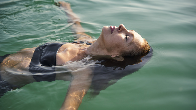 That said, even if you find yourself falling overboard without a lifejacket, you can keep yourself on the water's surface with relatively little effort. Floating on your back has the added benefit of keeping your mouth and nose out of the water to aid with breathing. To accomplish this, follow these steps: tilt your head back with your back arched and ears beneath the water; relax your body and take normal breaths; spread your arms and legs for improved stability and flotation; move your hands in a slight circular motion. If your legs sink lower than the rest of your body, don't panic -– that is normal.