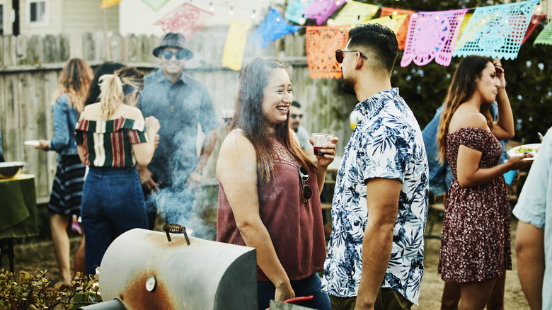 With smoke scented with the smell of cooking meat wafting through air, one of the best ways to ensure bears don't join your backyard barbecue is to be loud. This works on the same premise as making noise to avoid bears when hiking. Bears, especially black bears, are typically shy and avoid noisy areas. While a variety of noisemakers marketed for deterring bears, the sound of humans talking or singing is usually enough to keep bears at bay. This is simple enough if there is a large group, as the ongoing conversation will typically generate plenty of noise. If it's just you or you and a couple of others, having music playing or a television showing a ballgame in the background can accomplish the same thing.
