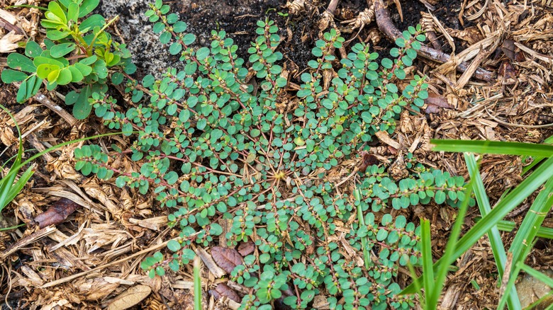 As every gardener and lawn care enthusiast knows, weeds are not all made the same. While some weeds are beneficial native plants with a bad rap, others are hardy and difficult-to-kill invasive terrors. The first category of weeds includes pollinator-friendly flowers like goldenrod and milkweed, while the second includes plants that will send a shiver down the spine of anyone who's dealt with them before — like the invasive tree of heaven or the garden-consuming spotted spurge weed. Spotted spurge weed is an interesting plant because it is actually native to the Eastern U.S. but it spreads so quickly and is so difficult to get rid of that it is considered a notorious weed across the country (except for the Southeast).
