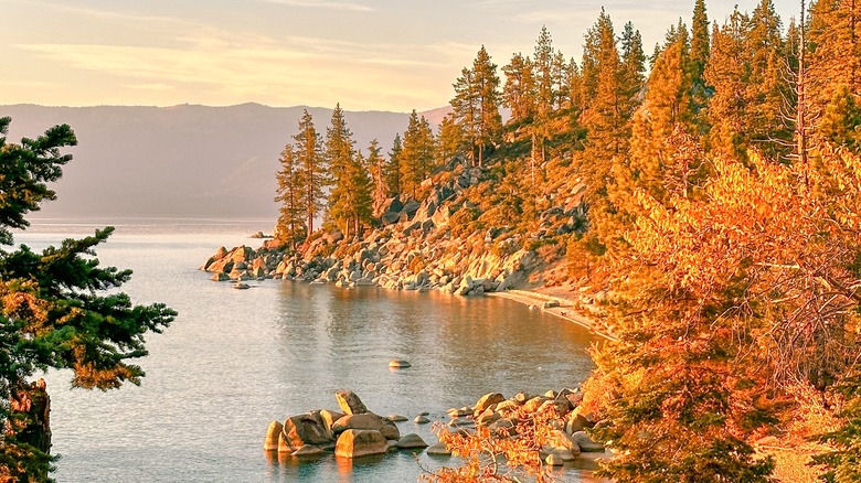 Lake Tahoe's pristine waters provide a striking contrast to the surrounding forests as they burst into vibrant autumn colors. Straddling the border between California and Nevada, Lake Tahoe is renowned for its year-round beauty, but fall is particularly magical. Mid-October is the prime time to visit Lake Tahoe for fall foliage. The aspen trees around the lake turn into a brilliant gold, creating a stunning contrast against the evergreen pines and the deep blue waters of the lake. The colors are most vibrant in the higher elevations around the lake, particularly where the aspen groves are abundant.