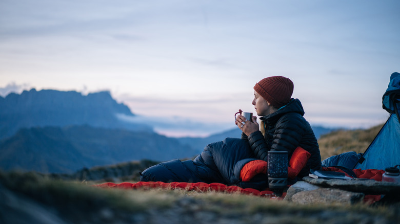 For fans of the outdoors, a self-cation presents the perfect opportunity to embrace the calming power of the wilderness. Research consistently shows that spending time in nature benefits our mental well-being. Specifically, a 2015 study published in Landscape and Urban Planning showed that time in nature decreases anxiety and improves mood. This could be because being outdoors reduces the amount of time we spend thinking negatively about ourselves, according to another research journal from the Proceedings of the National Academy of Sciences printed that same year. These benefits are still pronounced when you're alone in nature — which is what self-cationing is all about. So, whether you're hiking through dense forests, listening to waves crash along a remote shoreline, or camping under the stars, reconnecting with yourself offers an experience of true relaxation and renewal.