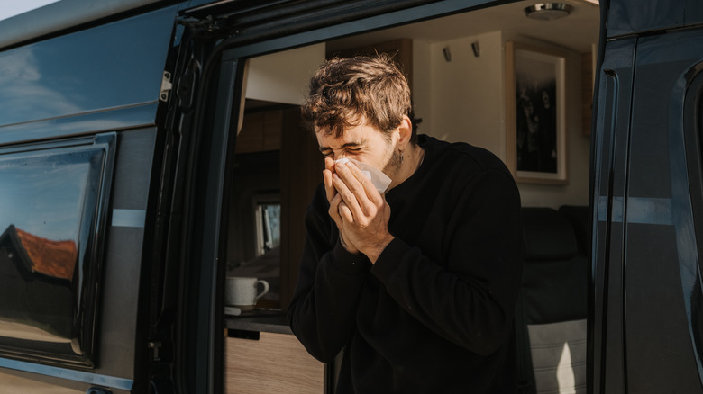 If you have a surprise onset of mild seasonal allergies (like hay fever) while camping, it may not be a life-threatening situation. That said, even mild allergies can certainly put a damper on your trip, especially if you didn't bring any allergy medicine with you. According to Elliott, when this happens, "Try not to directly inhale campfire fumes as this secondary smoke can trigger asthma and allergy symptoms." To treat the problem without OTC medicine, Elliott recommends that campers have fresh ginger on hand. She explains, "Take a pot of hot water, bring it to a boil, and breathe in that humidified air. It can help decrease inflammation in your nasal passages, sinuses, and lungs. Add a few drops of oil of oregano as well which can help with itchy allergy symptoms and inflammation."