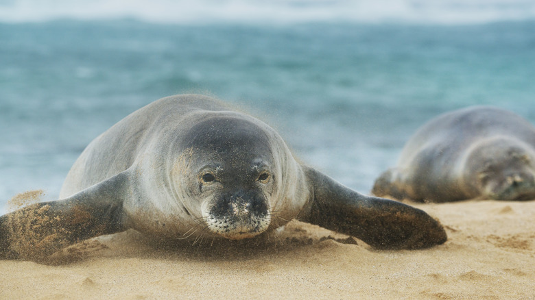 Hawaiian monk seals can be seen on Hawaiian beaches