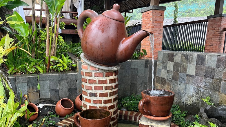 There are so many beautiful teapots in the world, and it's easy to get carried away with collecting them. Suddenly, then you're left with how to show each one off. Sure, you could let them sit on a shelf inside, drawing the eye in whatever room they inhabit. Or, you can find a way to get creative. One such way to use a teapot is to turn it into a charming fountain to catch the attention of anyone who visits.