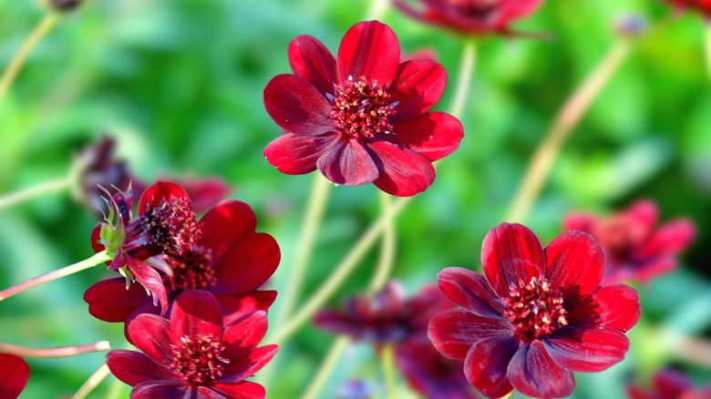 Hummingbirds and other pollinators tend to love chocolate cosmos flowers because they are filled with delicious nectar. It's something particularly important to these tiny birds, which have such a high metabolism that they need to be almost constantly eating. In fact, hummingbirds love all cosmos flowers because they tend to be nectar-rich. However, the chocolate cosmos may just be the best option to attract hummingbirds out of all the cosmos — because of the flower's deep maroon color (which accompanied by the aroma of the chocolate is reminiscent of red velvet cake). This is important because hummingbirds are specifically attracted to red, so adding red nectar-rich flowers to your home garden is a sure way to attract more of these gorgeous birds.