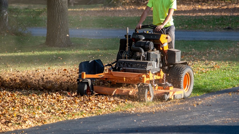 Even with the right equipment, you'll need to stay on top of the falling leaves. Infrequent maintenance is a common mulch mistake that can ruin your garden. This means mulching multiple times throughout the fall to prevent excessive buildup or risk leaving dead leaves on your lawn. If you wait too long, the leaves will likely pile up and make the mulching process ineffective, leading to the same problems of suffocating grass and excessive moisture retention. The more regularly you mulch, the better the results, but this requires more time and effort on your part, and may make traditional raking and bagging a more appealing option for some.