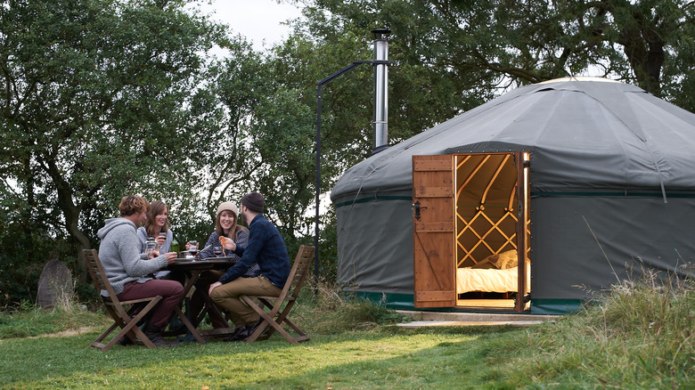 In contrast, tents are designed to provide only short-term shelter. A tent's thin walls and simple pole structure are good for short-term camping trips, but even seasoned campers know that this is only true under ideal conditions. Tents lack the solid structure of a yurt, so they don't provide good protection from extremely harsh elements. They also don't necessarily stay warm, unless you reinforce your tent walls to do so. Plus, tents aren't designed to offer space for activities like cooking. Campers usually set up tents for a basic rest spot for a few nights before packing it up and heading home, or continuing on their adventure. As such, tents are meant for short-term, lightweight camping experiences, because they can't provide the same level of comfort for as long as a yurt.