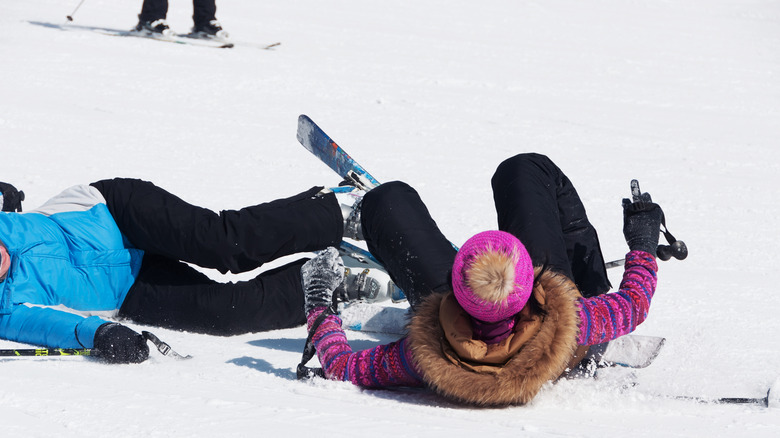 If you happen across skiers who have collided, safely come to a stop and render aid, if necessary. But, do keep in mind that you do not want to put yourself or others at risk when stopping to assist. Again, be aware of your surroundings. Alert other skiers to the situation by placing crossed skis above the collision area and, if possible, have someone go up to a very visible position to signal other skiers as to the potential danger.