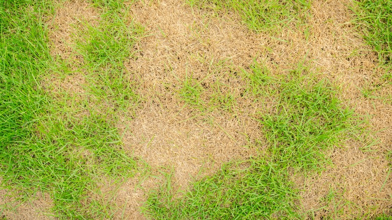 There are a couple of different types of pests that can create patches of dead grass in your lawn. The most common is the white grub, which is a form of beetle larvae. If there are enough grubs, they will feed on the roots of the grass, causing the area to brown and die. One grub does not make an unhealthy lawn. Good sod can tolerate about 5 to 10 grubs per square foot. More than that is when problems start.