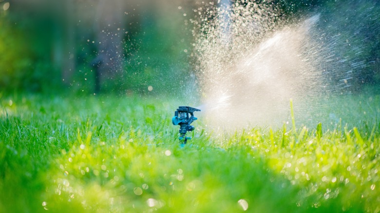 Lawn care can be quite a time-consuming part of owning a home because, not only are there lots of lawn care myths that can lead you astray, but there are also many reasons a lawn may suddenly turn brown — from fungal infections to not following the one-third mowing rule. However, when it comes to an entire lawn turning yellow, the most common cause usually has to do with water. While we all know that underwatering is a problem, many people don't know that overwatering can be just as bad and is actually quite easy to do. Despite common belief, most grass needs to be watered only two or three times a week. So, you should really think twice before you water your lawn every day. This is important because watering your lawn deeply for a few times a week encourages root growth and drought resistance.
