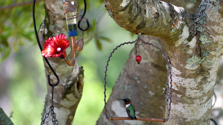 There are a wide variety of hummingbird swings on the market. While some are just wire shapes, but most of the better models, such as the Home-X Hummingbird Swing, incorporate a wooden dowel perch, which is easier for the birds to hang on than thin metal wire. Additionally, there are various shapes, ranging from circles to houses, as well as decorative models, like the Perky-Pet Copper Beaded Swing. The key is finding one that is durable and fits both your backyard style and budget.