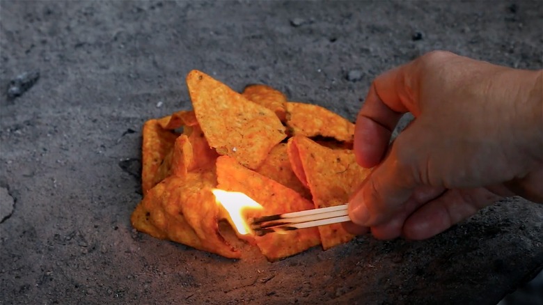 While any type of chips will work, many often wonder which chips work best. The majority of sources on the subject point to corn chips over potato chips. Both Rated Red and Far Out conducted tests to determine which type of chip performs best as campfire tinder. Each came to the same conclusion — Fritos come out on top, with Doritos coming in second. All other types of chips burn for far less time than the top two.