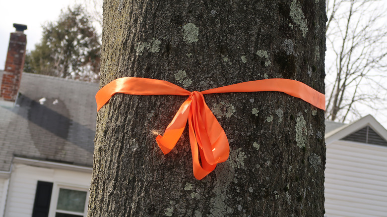 Tie warm-colored ribbons around your trees to attract hummingbirds
