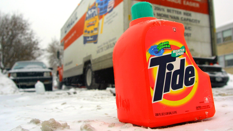 Whenever winter rolls around, it's time to reexamine our snow and ice removal routines. While there are plenty of tips and tricks to make getting that snow and ice off your driveway a little easier, one of the easiest ways to clear ice away is with a de-icing agent. While some people prefer to use more eco-friendly ice melters like vinegar, the most effective is normally commercial rock salt. The issue with rock salt is that touching it with your bare hands is not recommended because it can cause dryness and irritation. This makes getting an even layer of salt on your driveway a little difficult, which is why many people choose to use scoops, shovels, or even purchase a salt spreader from the garden center. Luckily, if you don't want to buy a salt spreader, you can easily DIY one using an empty laundry detergent bottle.