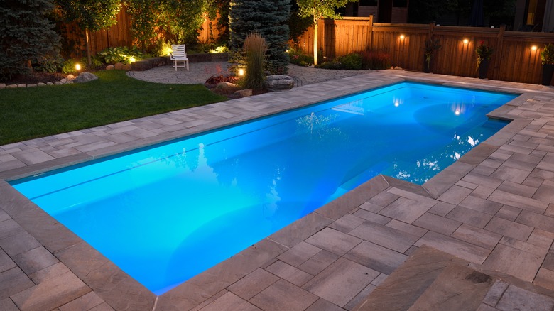 When excavating the ground, leave at least 6 inches to accommodate the base materials. You'll also need to consider the slope of the land in order to direct water away from the pool. Lay gravel and sand for durability, and then begin laying the pavers, keeping a gradual slope away from the pool. Make sure you lock the pavers into place with joint sand or fine gravel, and then use a plate compacter to press the sand into the joints. For added protection, use a sealant on the pavers to reduce staining from pool chemicals and prevent moss or algae buildup. Sealing also provides an extra layer of protection against the wear and tear caused by constant exposure to water and sunlight.