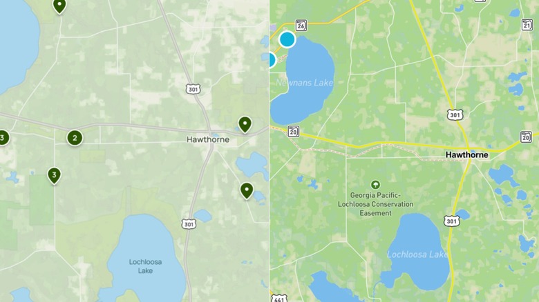 One of my biggest issues with the process of planning my hike was how few trails in the area the app actually mentioned. According to HiiKER (shown on the right, above), there were none within a 25-minute drive from me, and even those didn't have any photos or reviews, which I tend to rely heavily on to get a sense of the route, difficulty, terrain, and anything I should be aware of before heading out. However, looking at AllTrails, I had several options near me. When I did make my final decision on the route to take, I passed by a few well-marked and official paths along the way there.