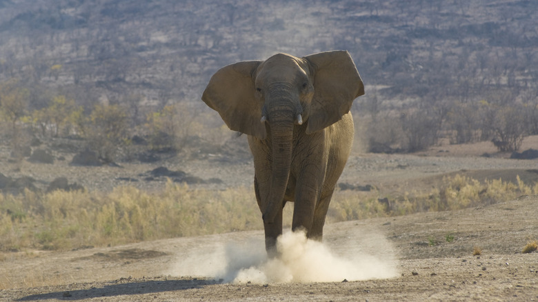 When in elephant territory, respect their space, and if you must observe them, do so from a safe distance. Pay attention to local advice and guides who understand elephant behavior. If an elephant flares its ears, trumpets loudly, or mock charges, it's warning you to back off. In these situations, retreat slowly without turning your back and remain calm so that you can present yourself as non-threatening.