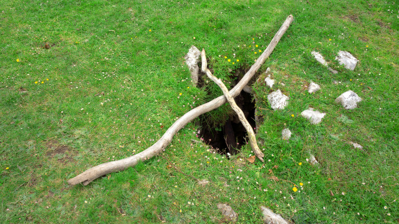 If you are familiar with specific ground-to-air signals, you can spell those out as well. For example, Roman numeral I means someone is seriously injured and needs a doctor, while Roman numeral II signals there is a need for supplies. An X means you are unable to continue or move any further. However, there is no need to stress if you don't remember specific signals, as creating anything that will stand out from the natural environment should get you attention overhead. To that end, in addition to creating an X or SOS in the ground, scattering or hanging brightly colored clothing and other items can help rescuers locate you.