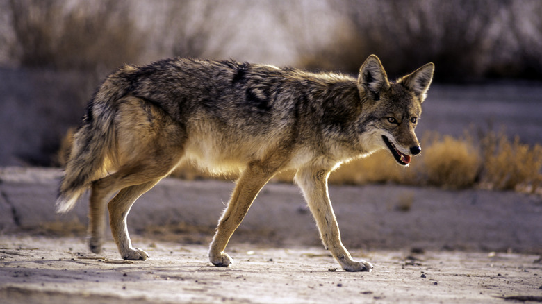 The best thing to do if you happen to see a coyote is to leave it alone. Don't run away, but don't approach it and give it plenty of space to move away. If you do have a pet with you, pick it up or keep it close by shortening the leash. If the coyote does not move away, yell, use noisemakers, and throw objects in the direction of the animal. These actions are known as coyote hazing and typically results in the coyote running away.