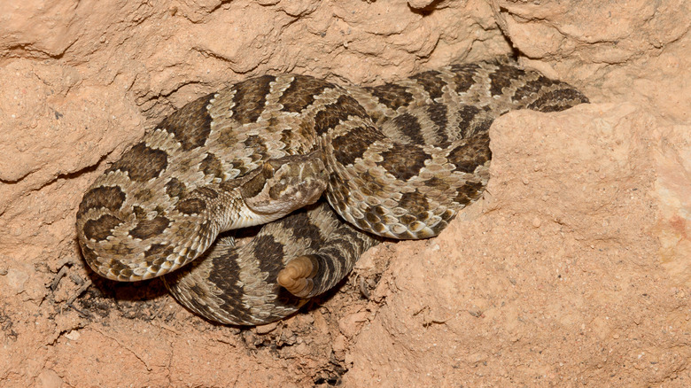 If you ever hear or see a rattlesnake while hiking, the first thing you should do is try and back away and give the snake some space. Like most other animals on this list, rattlesnakes would prefer to avoid humans and escape rather than attack. Because of this, one way to prevent being bitten is to give a rattlesnake around 10 feet of space so that it doesn't feel threatened. However, if you accidentally startle a snake and get bitten, you should try to remain calm and immediately call 911 for help from emergency services.