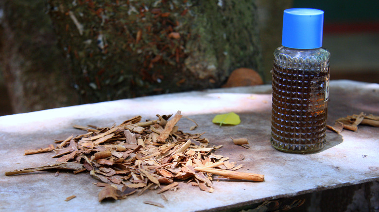 Cedarwood is another natural way to repel snakes, and you don't even need essential oils to do so — though there are cedar versions out there if that is the route you want to take. However, all forms of this wood repel pests, including mulch, sawdust, and shavings. The general rule of thumb is the smaller the wood, the stronger the scent and the more effective it is, so bringing a bag of shavings or sawdust with you while out in the wilderness works best.