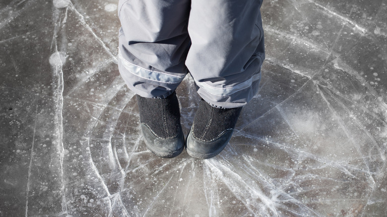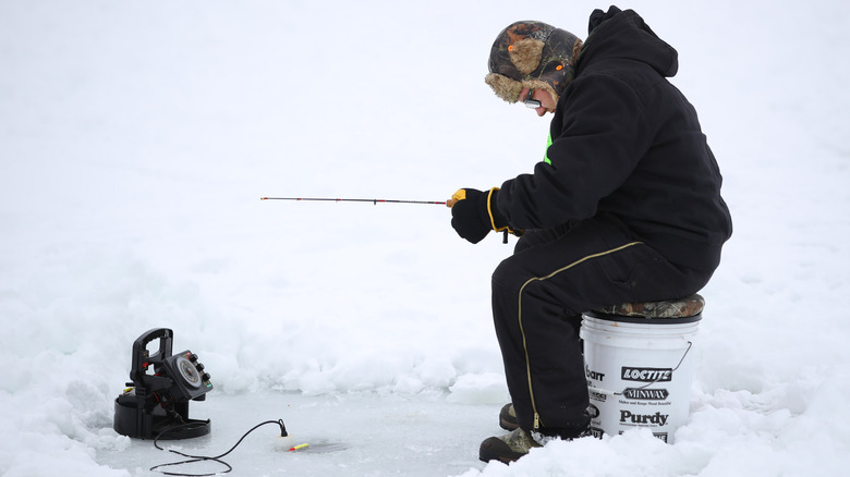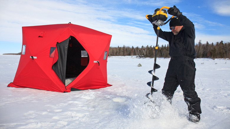 It might seem impossible to drown when ice fishing. However, it happens more often than people realize, as it is quite possible to fall through the ice if it is not thick enough to hold your weight. In fact, CBS News reported that such an incident claimed the life of an ice fisherman in New York at the beginning of 2024. To ensure a safe trip, it is important to wait until the ice is at least four inches thick before venturing out on foot and at least five to seven inches deep before putting a snowmobile or ATV on it. Even with adequate thickness, be sure to frequently check as you move along using an axe, chisel, spud, or auger, as ice can vary in thickness throughout an area.
