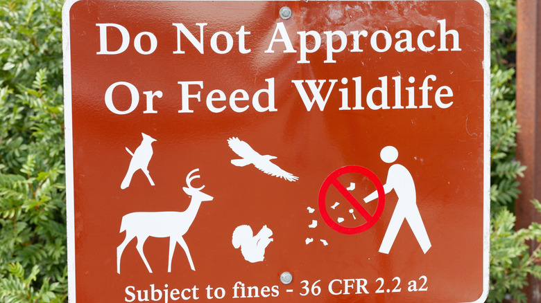 Feeding animals is a no-no. This behavior not only draws animals within an unsafe distance, it habituates them to humans. As a result, wild animals can begin to associate humans with a free meal, causing them to approach people and, at times, leading to more aggressive behavior and an increased risk of attack.