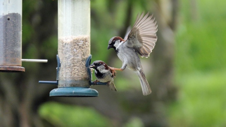Keeping more than one bird feeder in your yard will also increase the likelihood of conflict. Although multiple feeders can stop crowding at single feeders, it's also likely to bring together bird species that don't get along with each other. For example, grackles are an aggressive blackbird species known to steal food from other birds at feeders. There are other common birds you never want to see at your bird feeder, like house sparrows that try to hog food. Remember that multiple feeders in your yard may lead to more encounters with undesirable visitors.