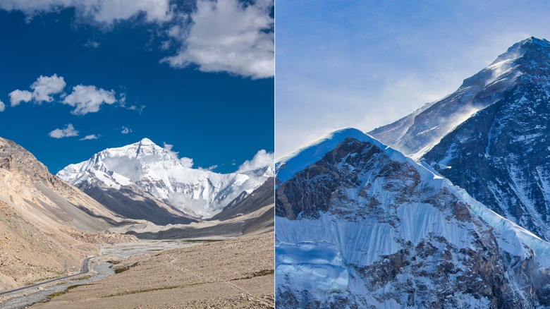 Climbers can choose between two routes: the South Col via Nepal or the Northeast Ridge via Tibet. The South Col route, which starts in Nepal, is the more popular option. It offers incredible views of the Khumbu Icefall and the rest of the Himalayan range. Since it's more frequented, it also offers more well-established logistics like porter services and fixed ropes along certain sections. On the downside, since it attracts more climbers, there is more crowding at camps and bottlenecks along the way. In contrast, the Northeast Ridge route is quieter, with fewer climbers, because it usually presents harsher weather conditions, and base camps lay at higher altitudes. Climbers on this route also face steeper ascents, and more technically demanding sections like the notorious Second Step.