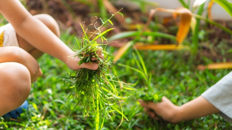 If goosegrass pops up uninvited in your yard and there's only a few plants to take care of, hand-pulling can do the trick. A hand-held weeder, a tool that beginning gardeners absolutely need, is also effective at removing small, young infestations by the roots. You can also focus on improving the soil through aeration and reducing foot traffic. Prolific goosegrass growth can tell you a lot about the health of your soil. Weeds like goosegrass are less likely to find a foothold in your lawn if your turf is well-fertilized and properly irrigated. Always choose turfgrass varieties that are adapted to your environment, because thriving turf leaves no space for weedy grasses.