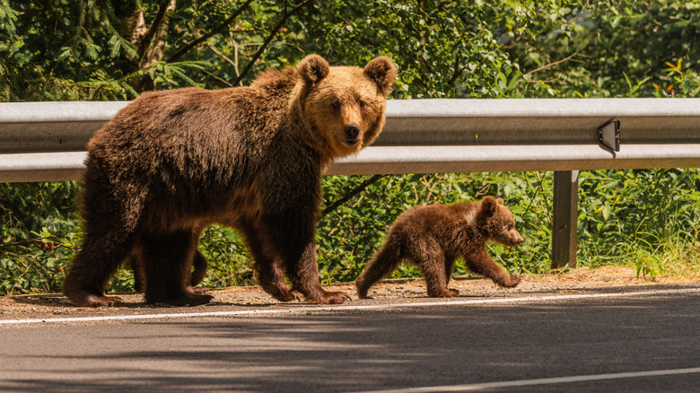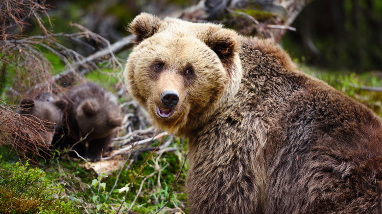 You should never approach a mother bear and her cubs (or any wild bear for that matter). "Females with cubs may be quicker to engage in a defensive attack if they feel their cubs are threatened," notes Elmeligi. Because of this, it is a good idea to try and avoid crossing paths with a mamma bear and her babies altogether. As Elmeligi explains, "The main thing when recreating in bear habitat is for you to be on alert — don't hike with earbuds, keep your dog on a leash, pay attention to your surroundings. Ideally, you would see a bear before it sees you and you can leave without making much of a fuss." Furthermore, while in bear country, she recommends alerting any bears in the area that you're approaching. This will give them ample time to head elsewhere. "Make noise by singing, talking with friends, or calling out 'Yo Bear' every once [in] a while," advises Elmeligi.